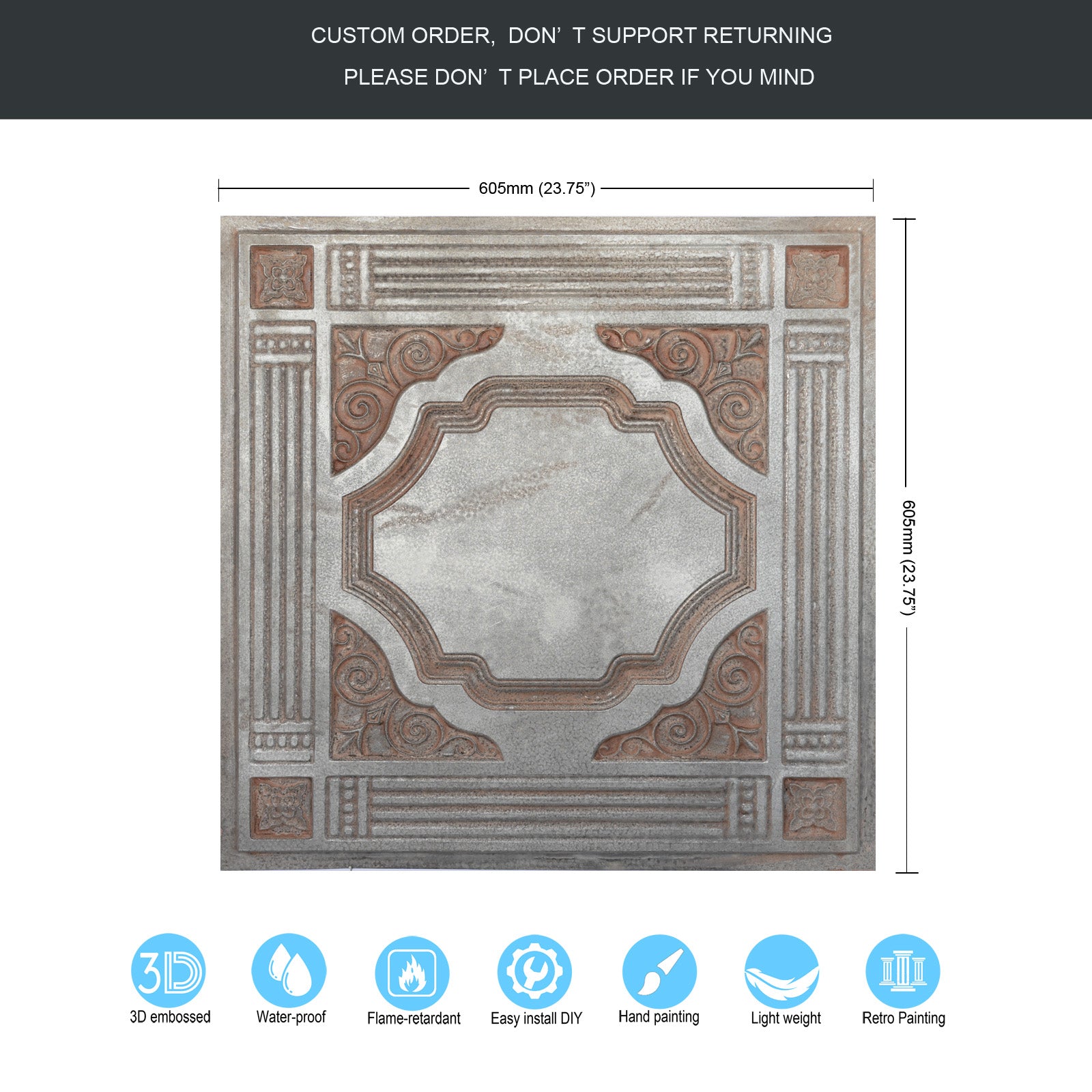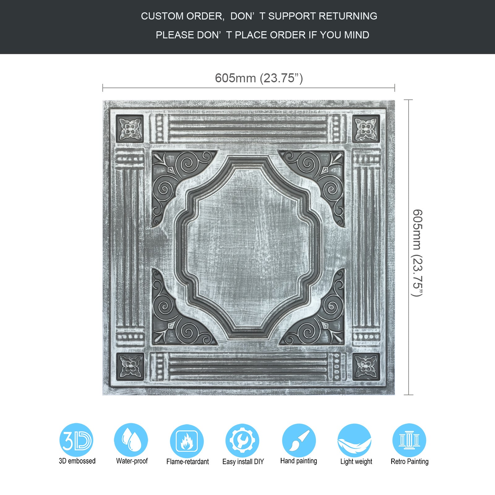 Dimension:23.75" x 23.75"(or 605mmx605mm)