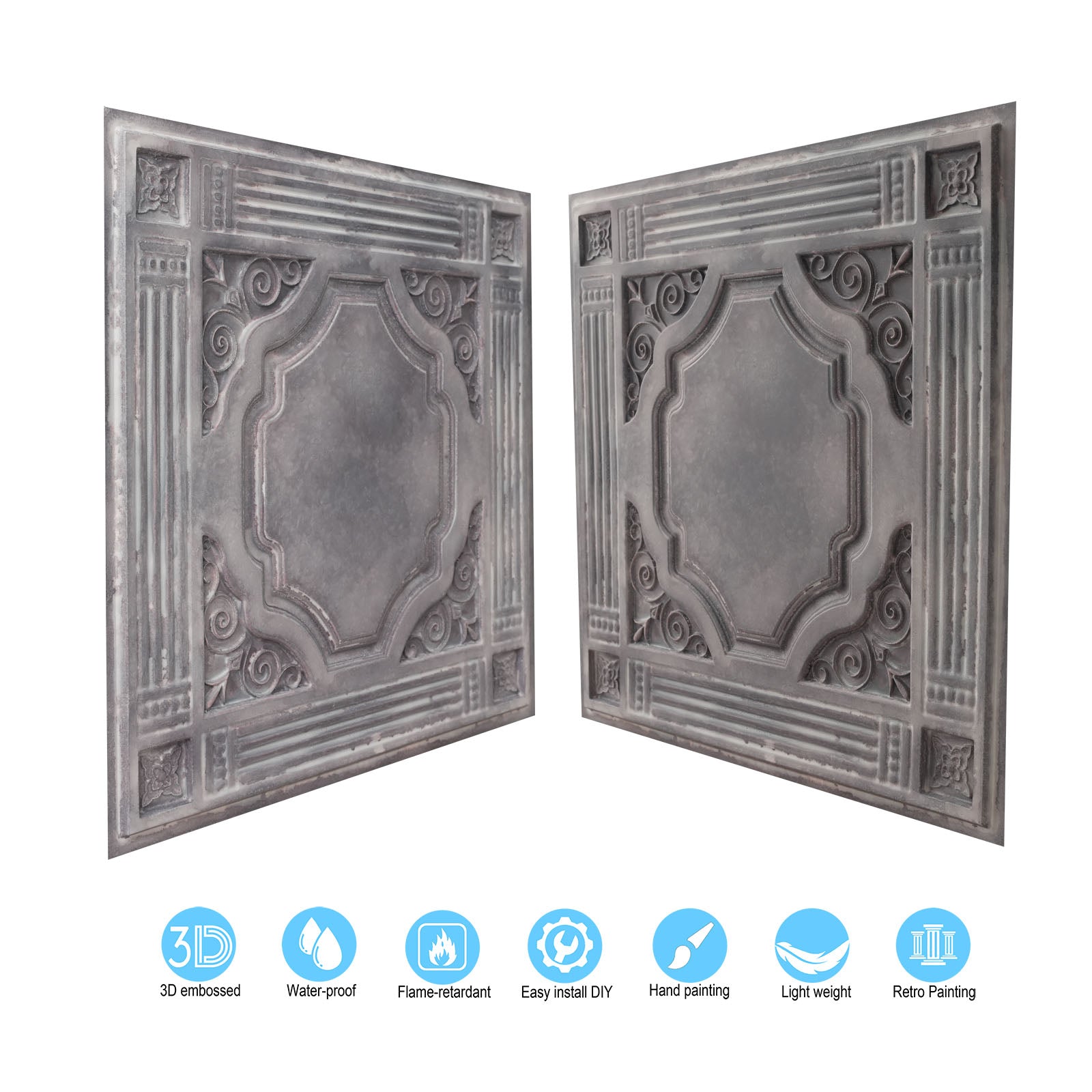 10tiles/lot DIY Faux Metal Ceiling Tile Panels for Café Bars, Studios and Artistic Interiors PL65