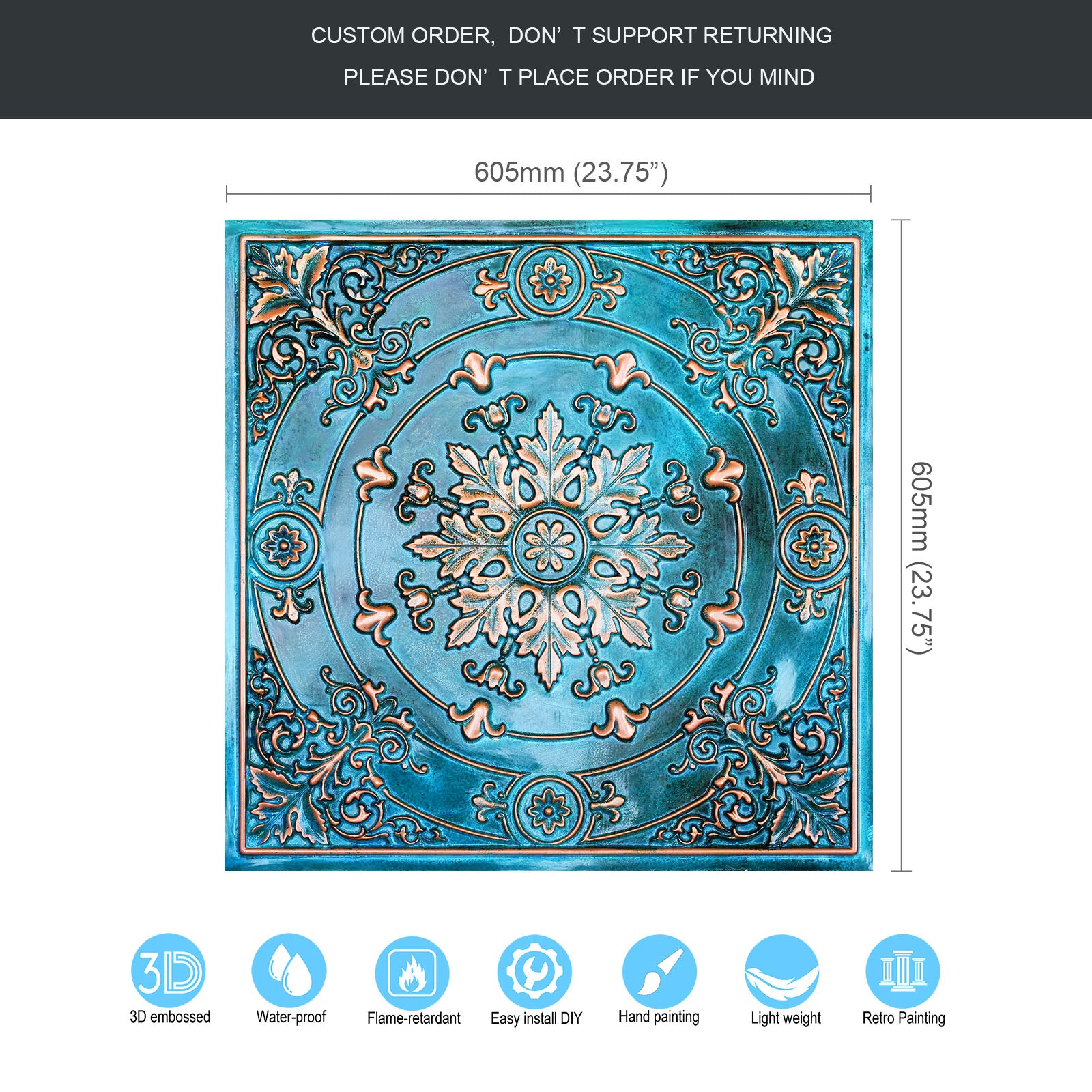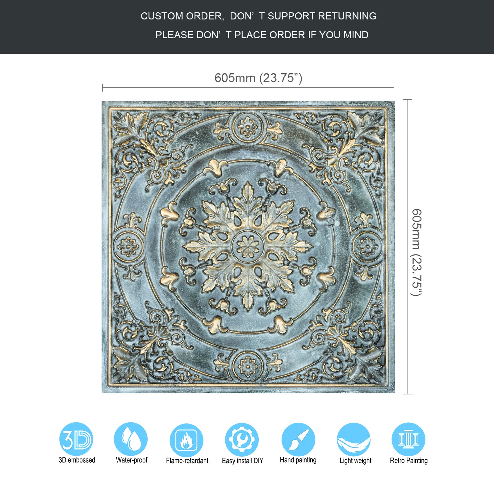 Dimension:23.75" x 23.75"(or 605mmx605mm)