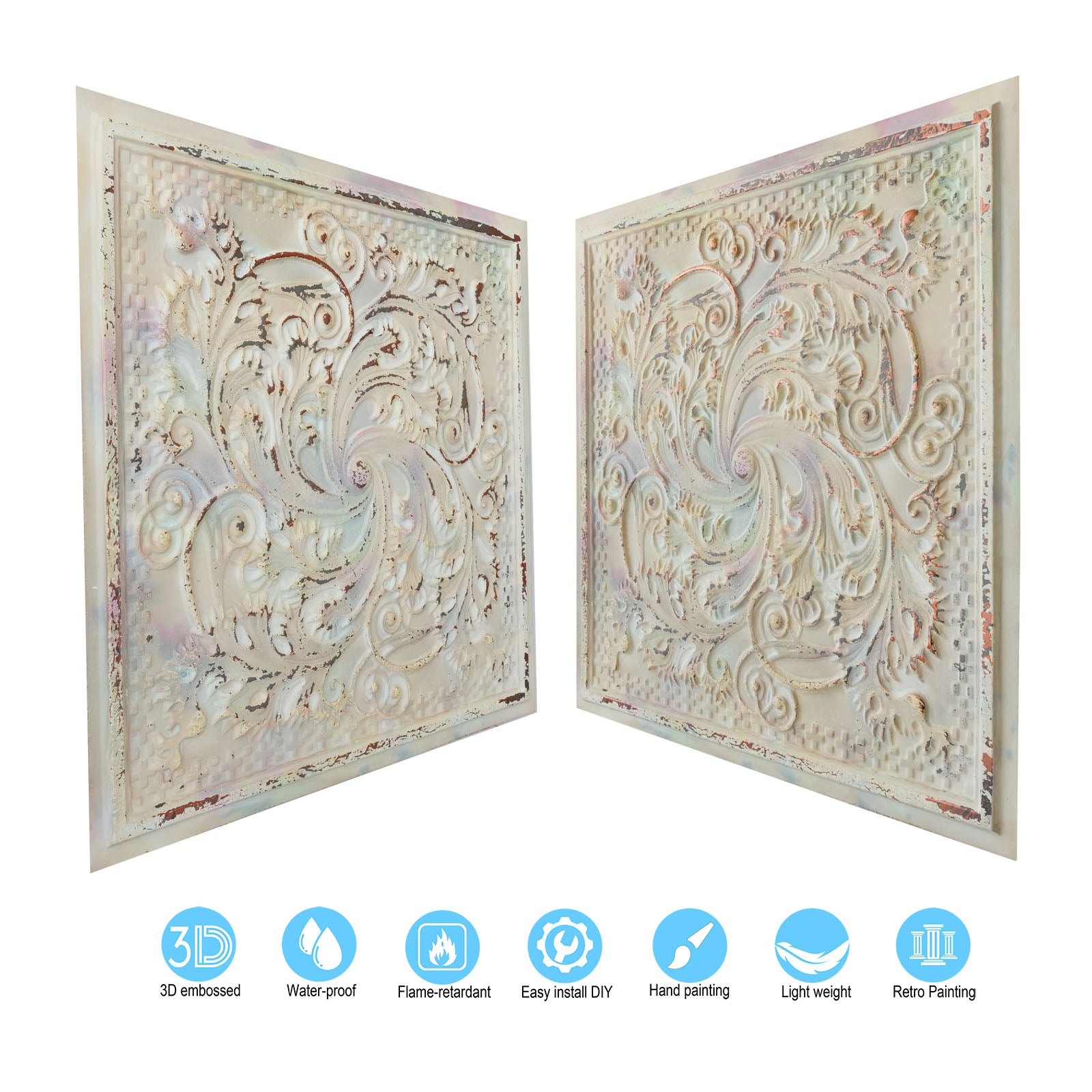10tiles/lot Distressed Faux Tin Ceiling Tiles for Industrial Cafés, Craft Workshops and Retro Interiors PL62
