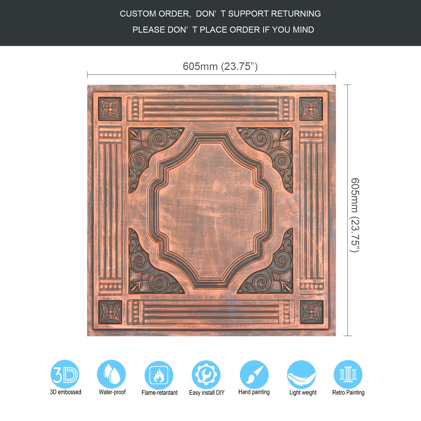 Dimension:23.75" x 23.75"(or 605mmx605mm)