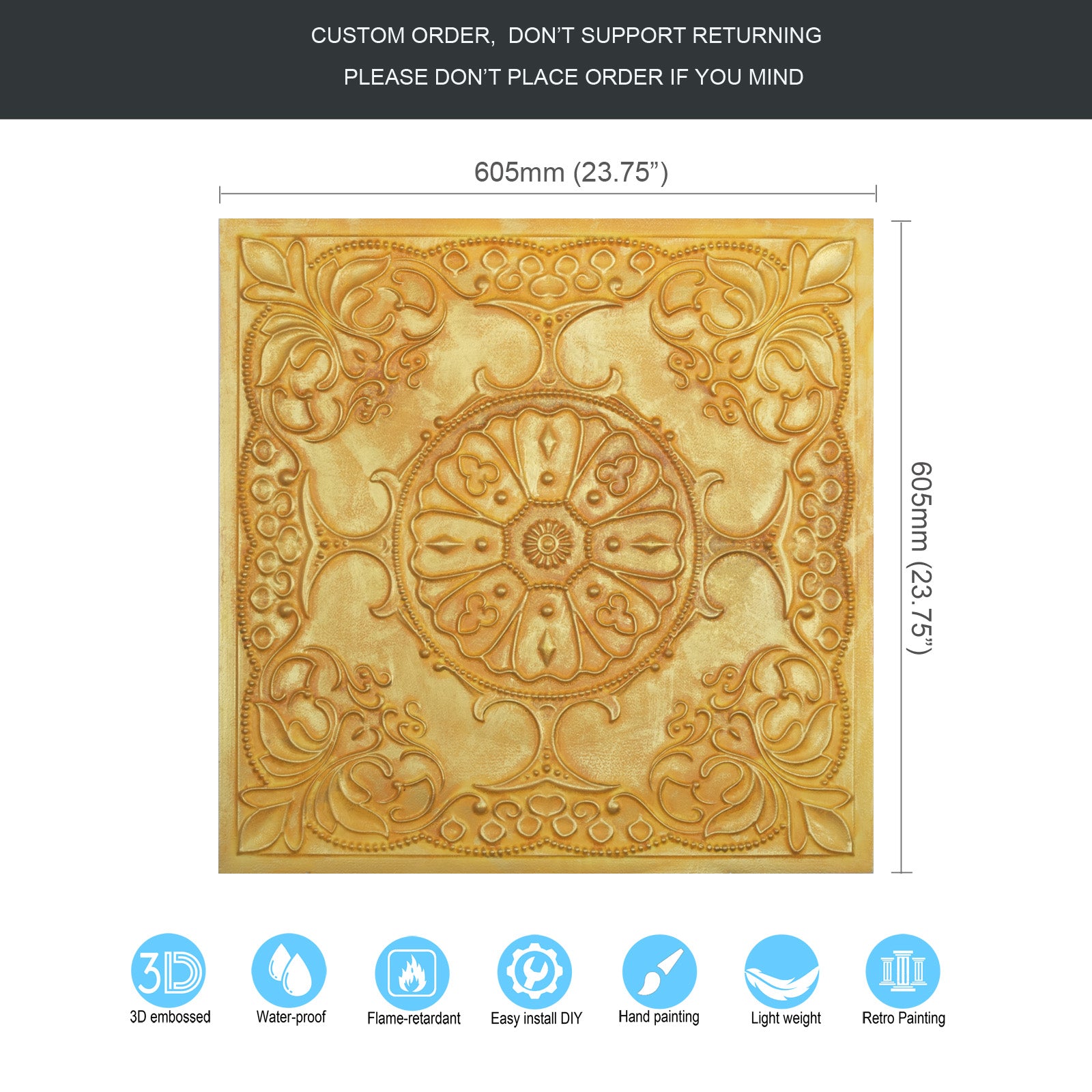 Dimension:23.75" x 23.75"(or 605mmx605mm)