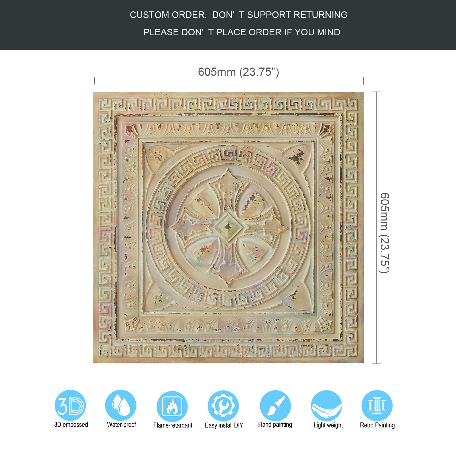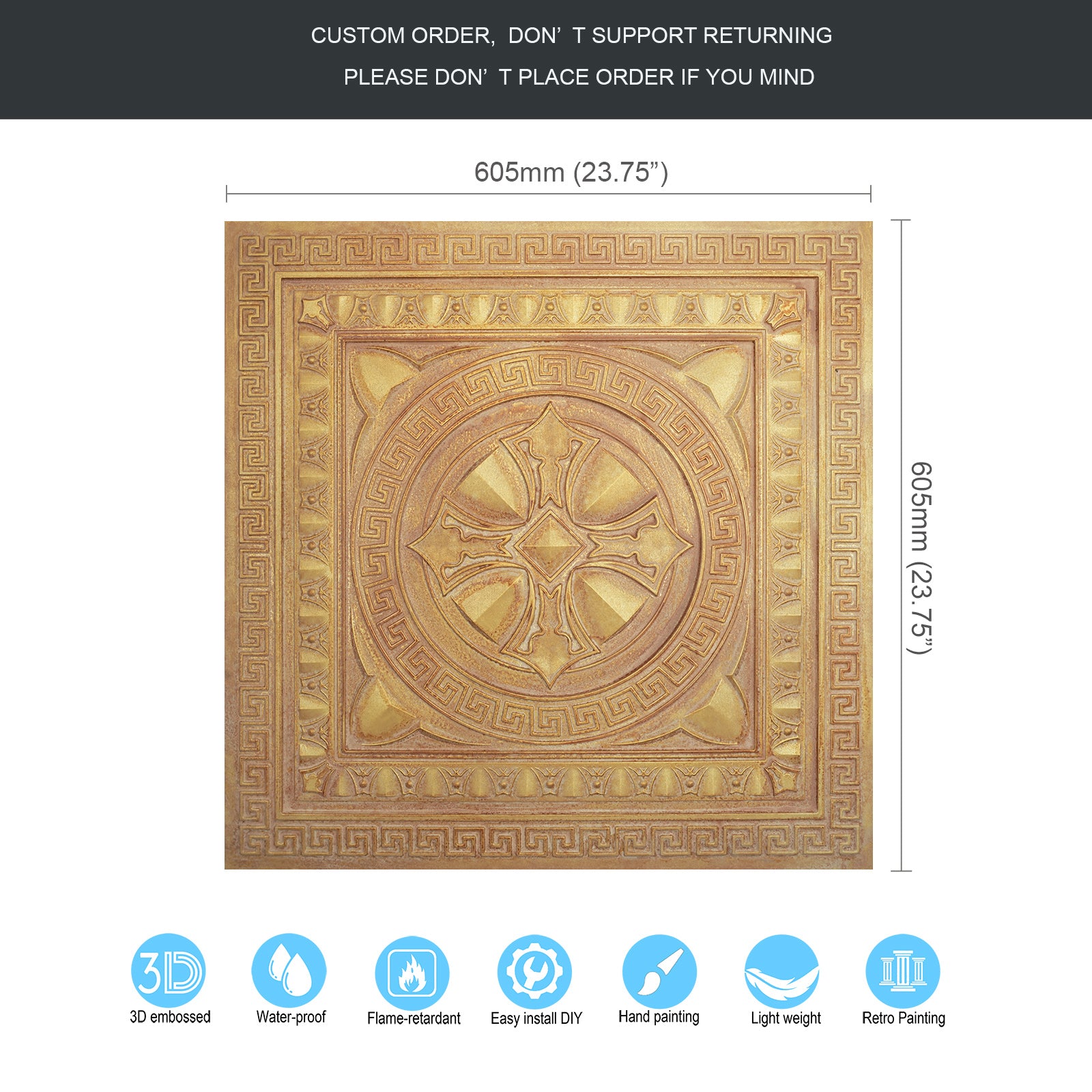 Dimension:23.75" x 23.75"(or 605mmx605mm)