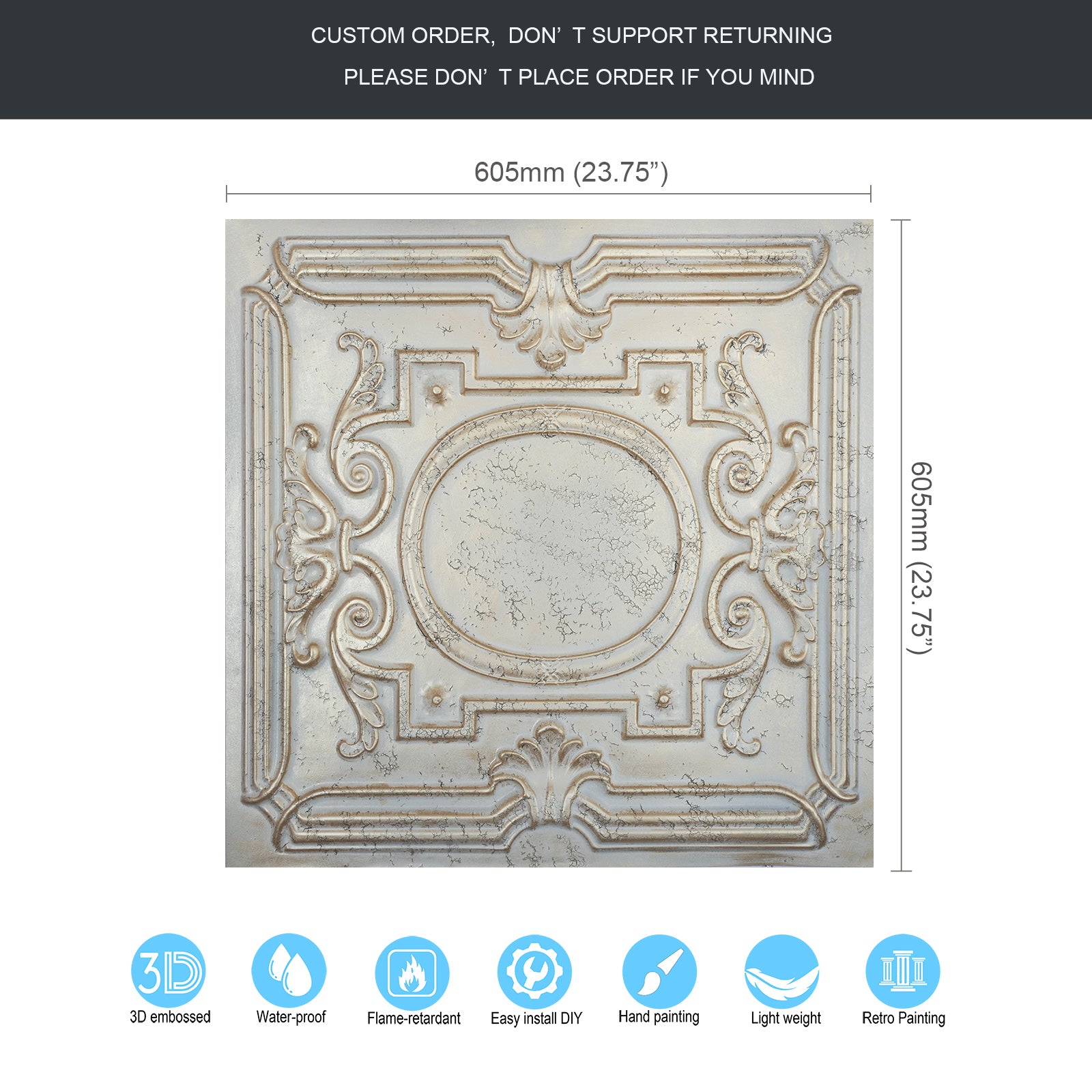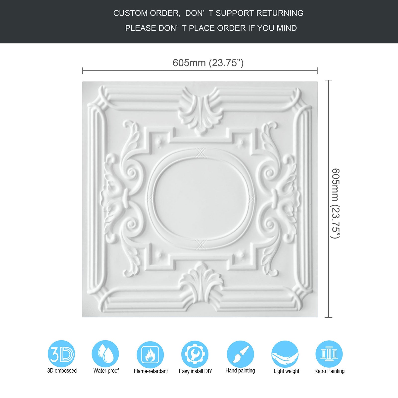 Dimension:23.75" x 23.75"(or 605mmx605mm)