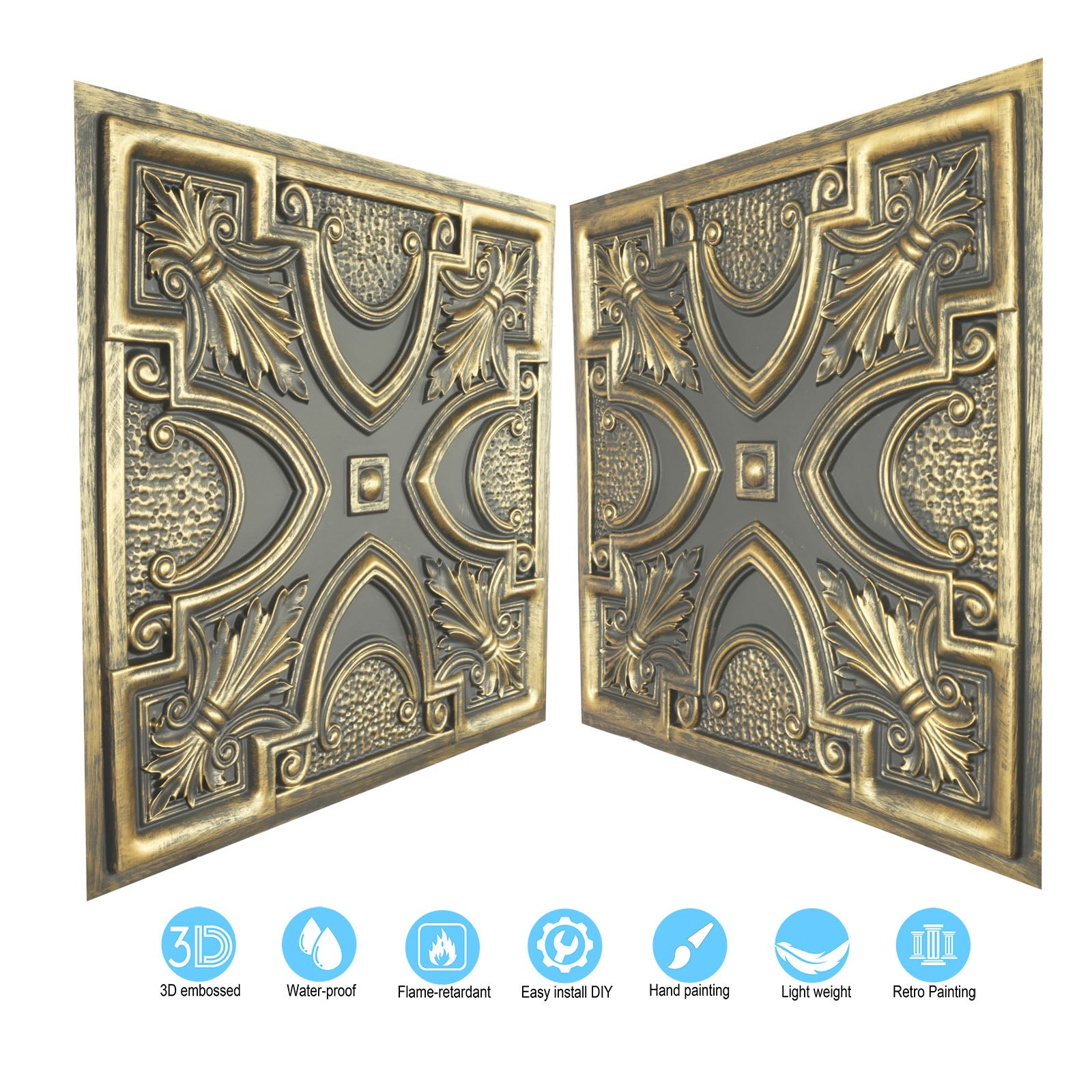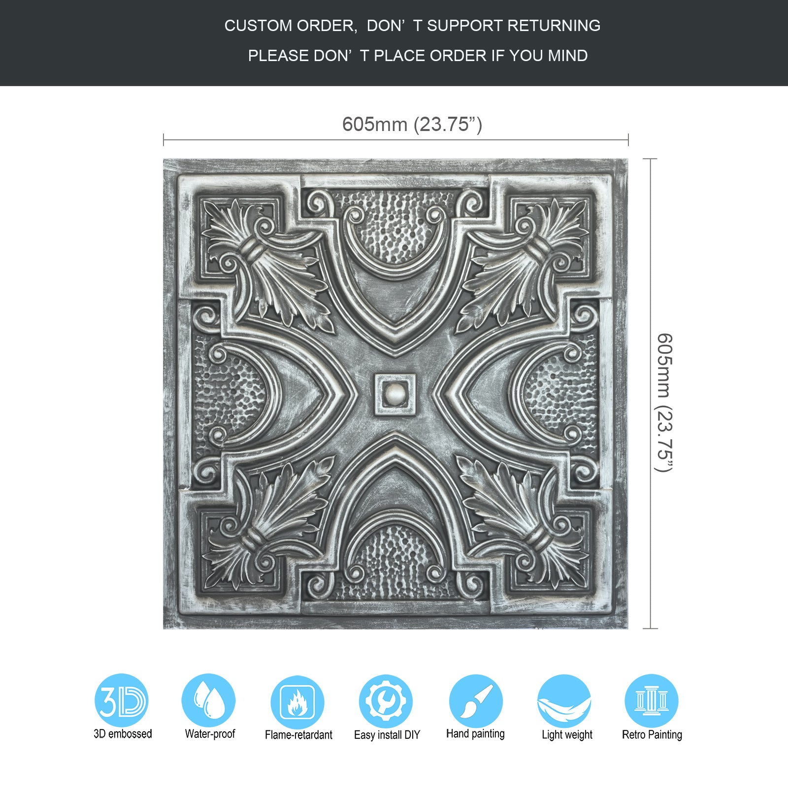 10tiles/lot Faux Tin Ceiling Tiles 3D Embossed Wall Panels for Restaurant PL11