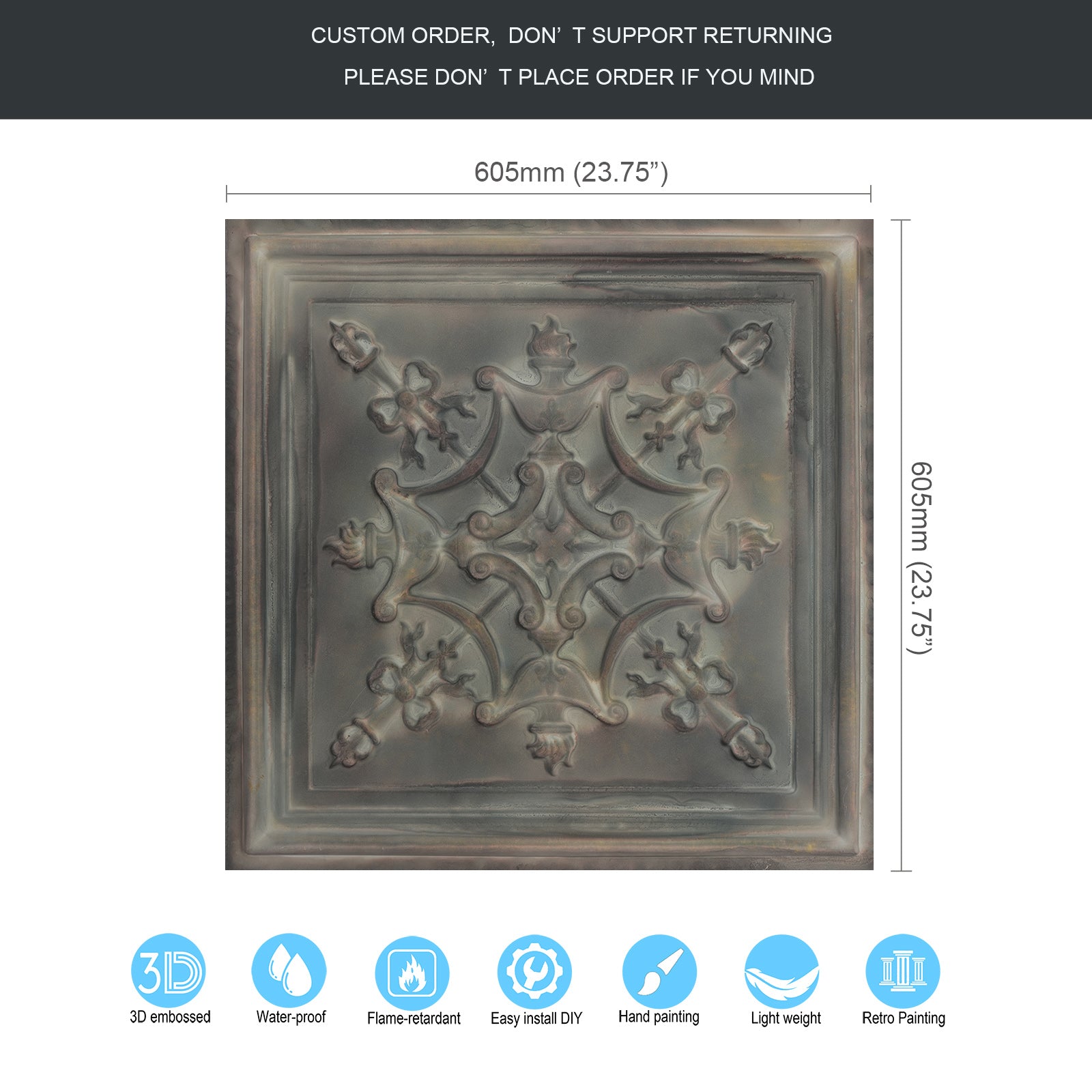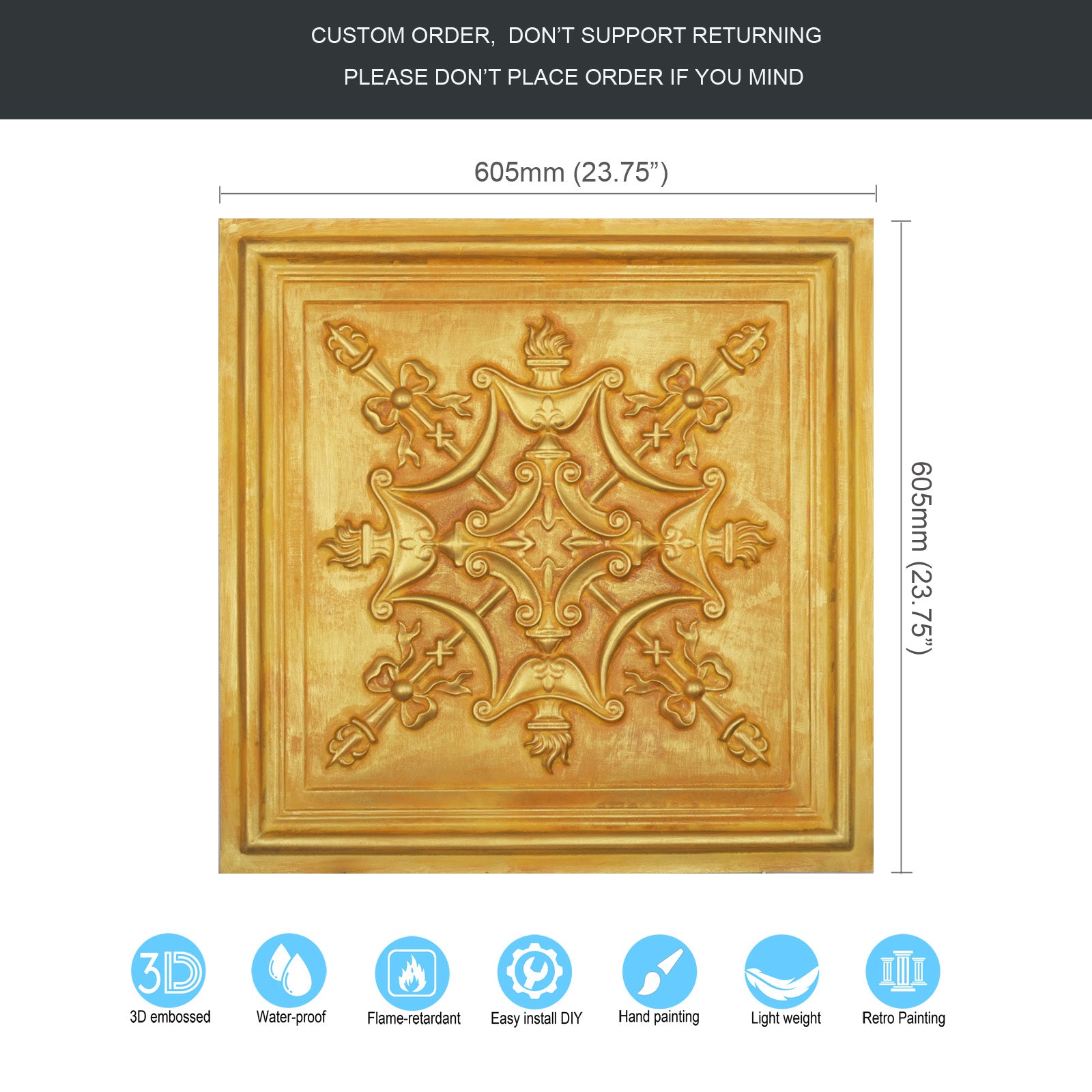 Dimension:23.75" x 23.75"(or 605mmx605mm)
