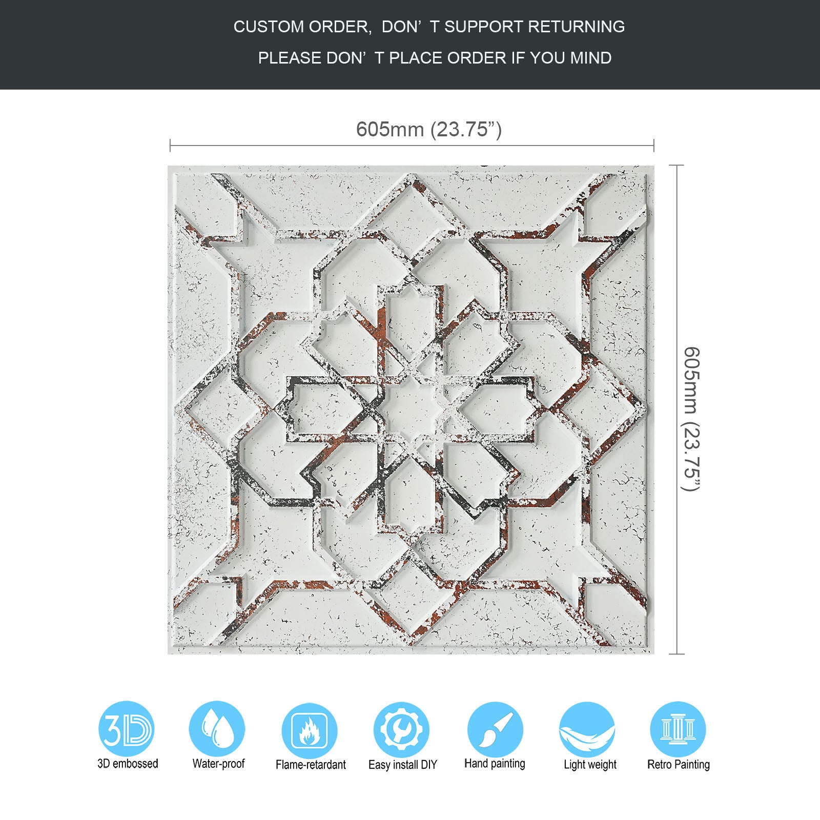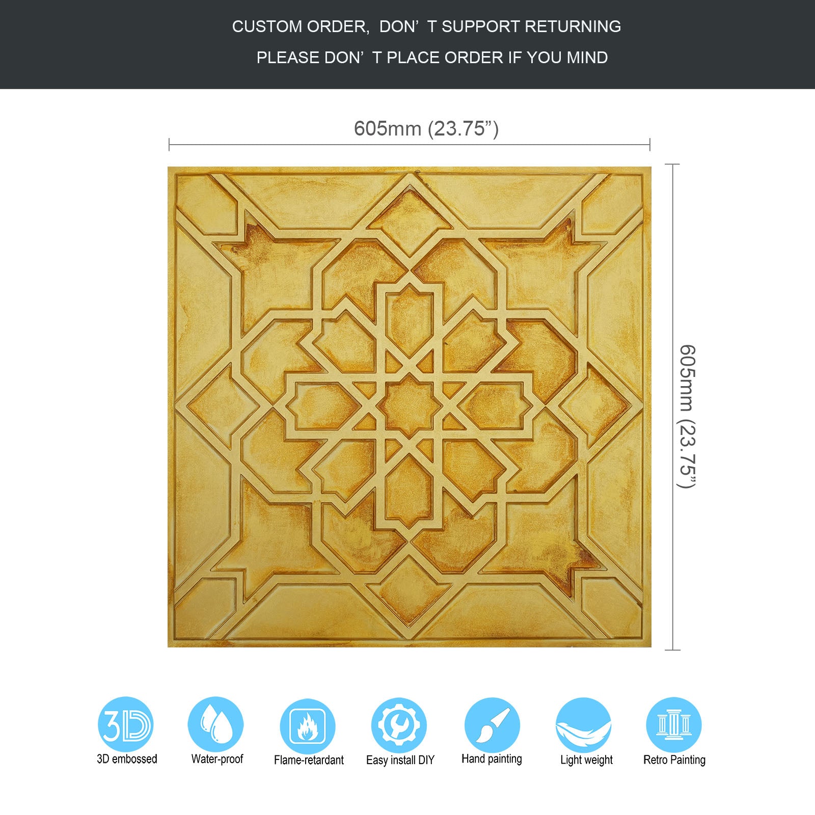 Dimension:23.75" x 23.75"(or 605mmx605mm)