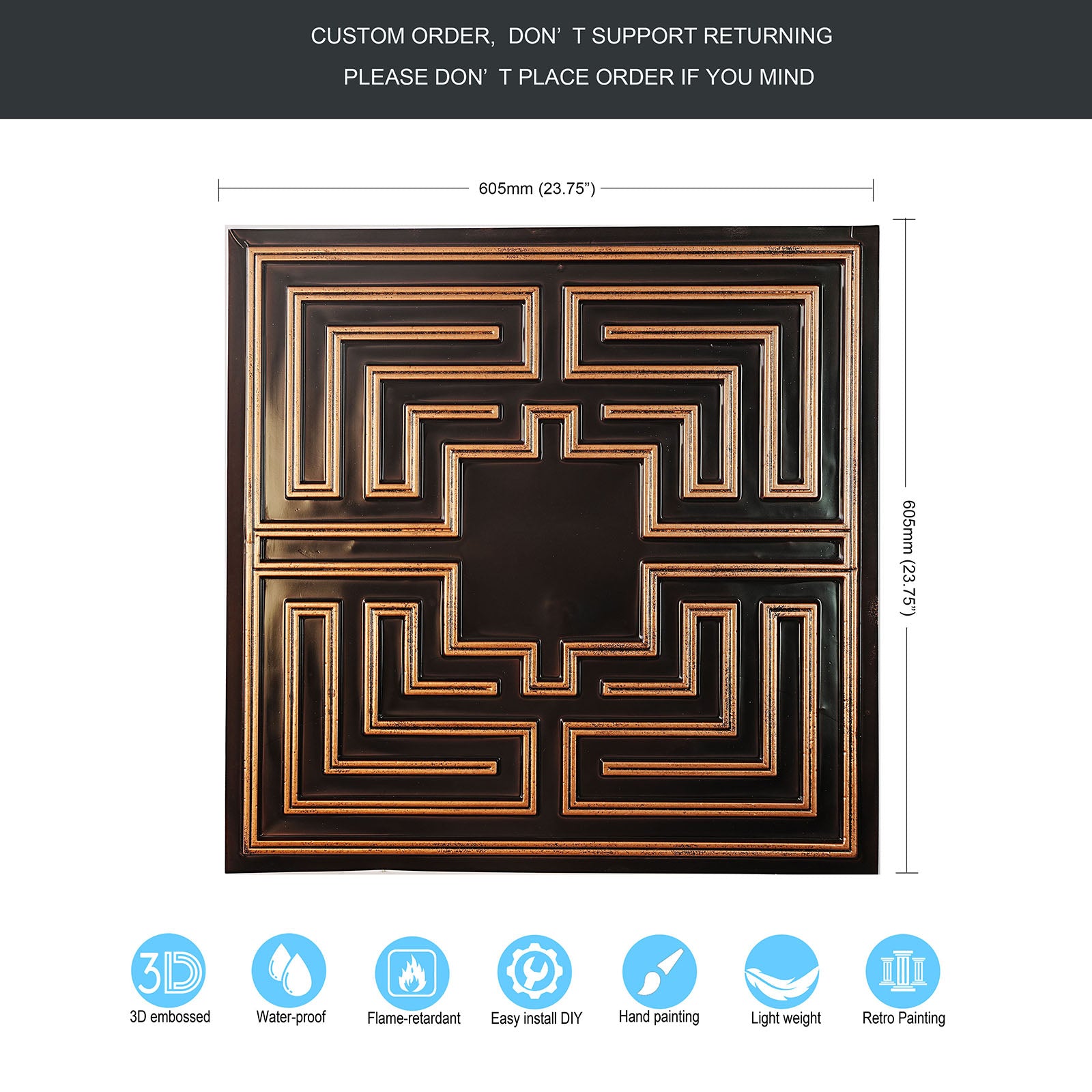 In the world of interior design, our decorative faux tin ceiling tiles have become transformative elements injecting vitality and personality into mundane spaces, serving as ideal catalysts for decoration enhancement. The key lies in harmonizing designs and colors with existing elements—walls, floors, and furniture—offering customized choices for interior aesthetics.