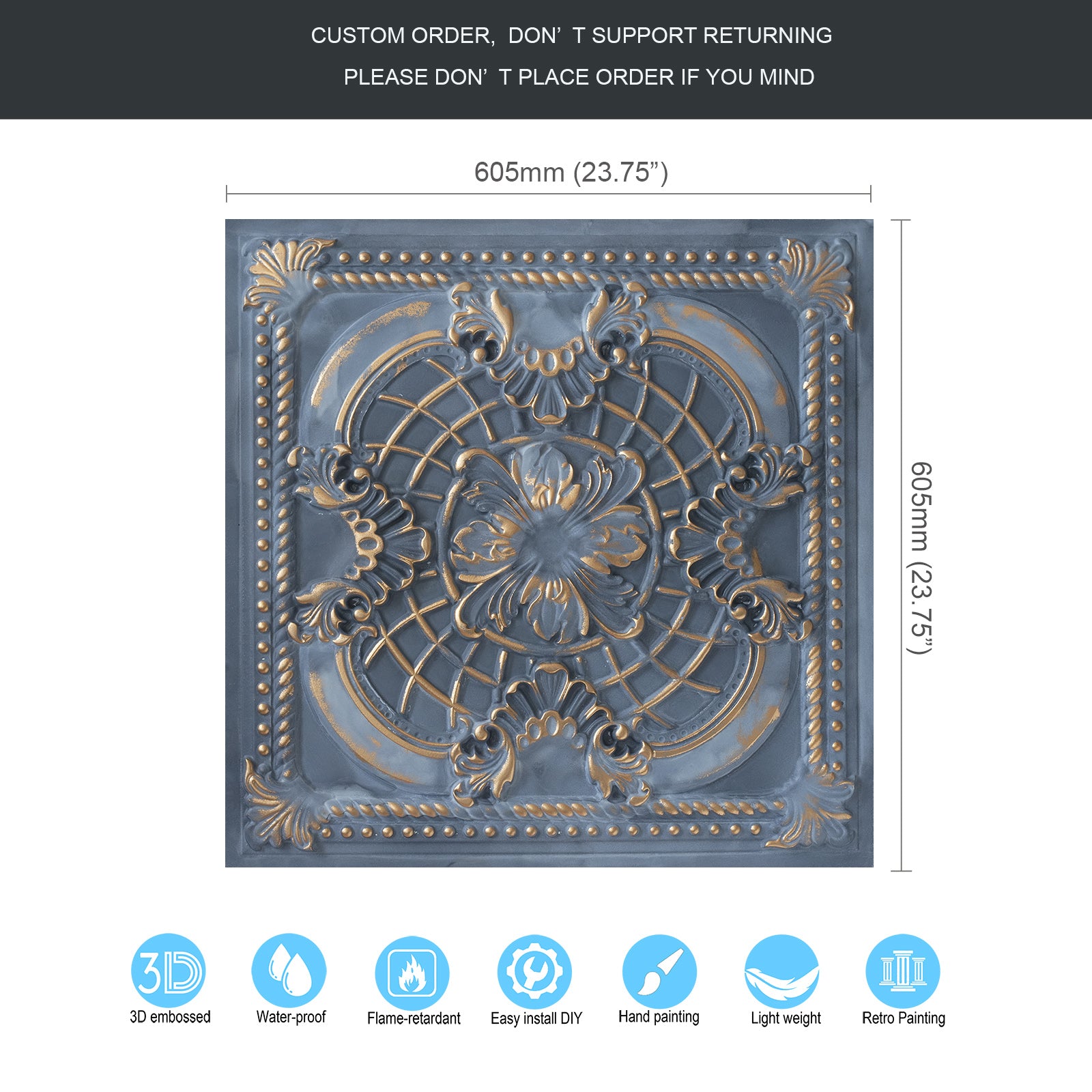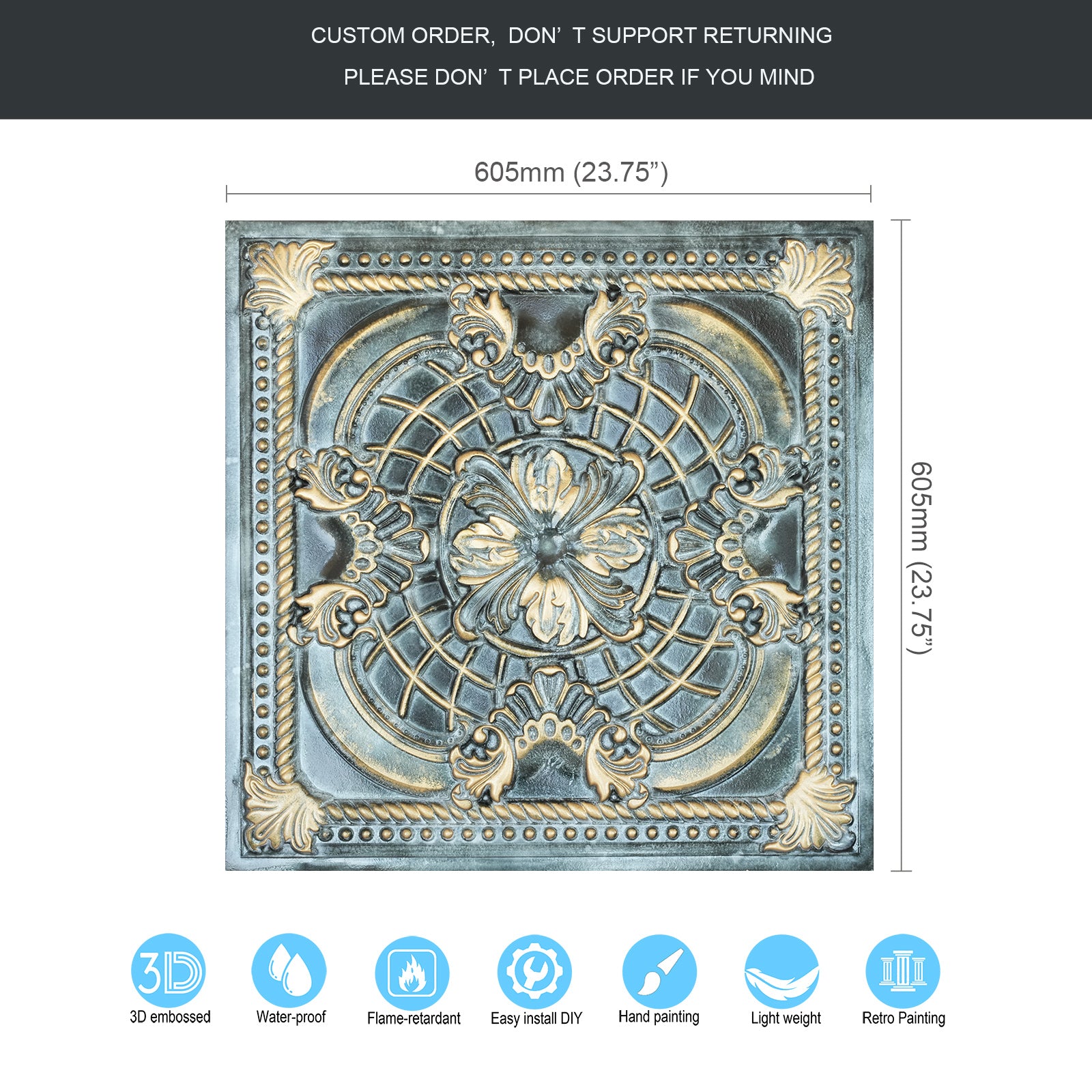 10tiles/lot DIY Faux Metal Ceiling Tile Panels for Café Bars, Studios and Artistic Interiors PL31
