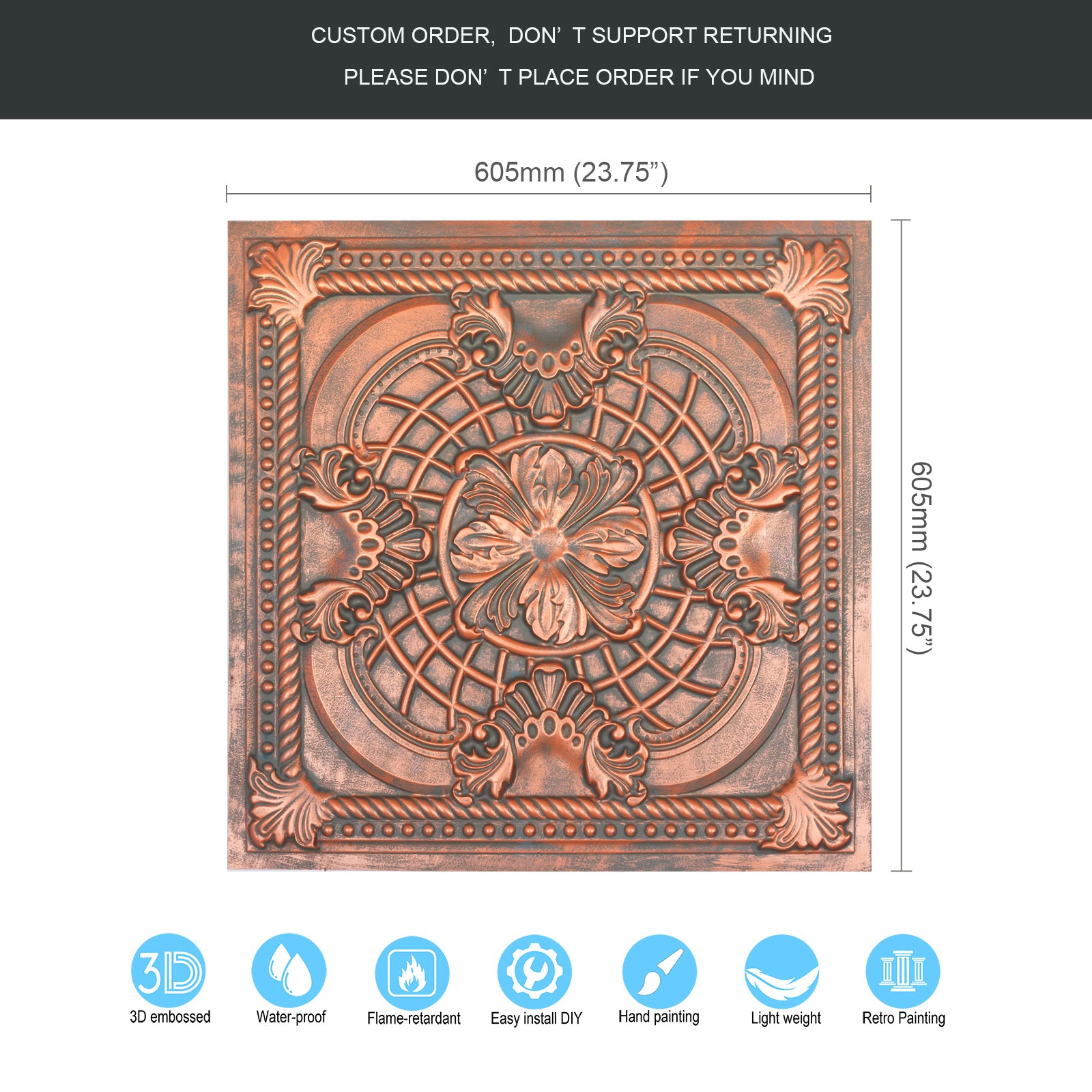 In the world of interior design, our decorative faux tin ceiling tiles have become transformative elements injecting vitality and personality into mundane spaces, serving as ideal catalysts for decoration enhancement. The key lies in harmonizing designs and colors with existing elements—walls, floors, and furniture—offering customized choices for interior aesthetics.