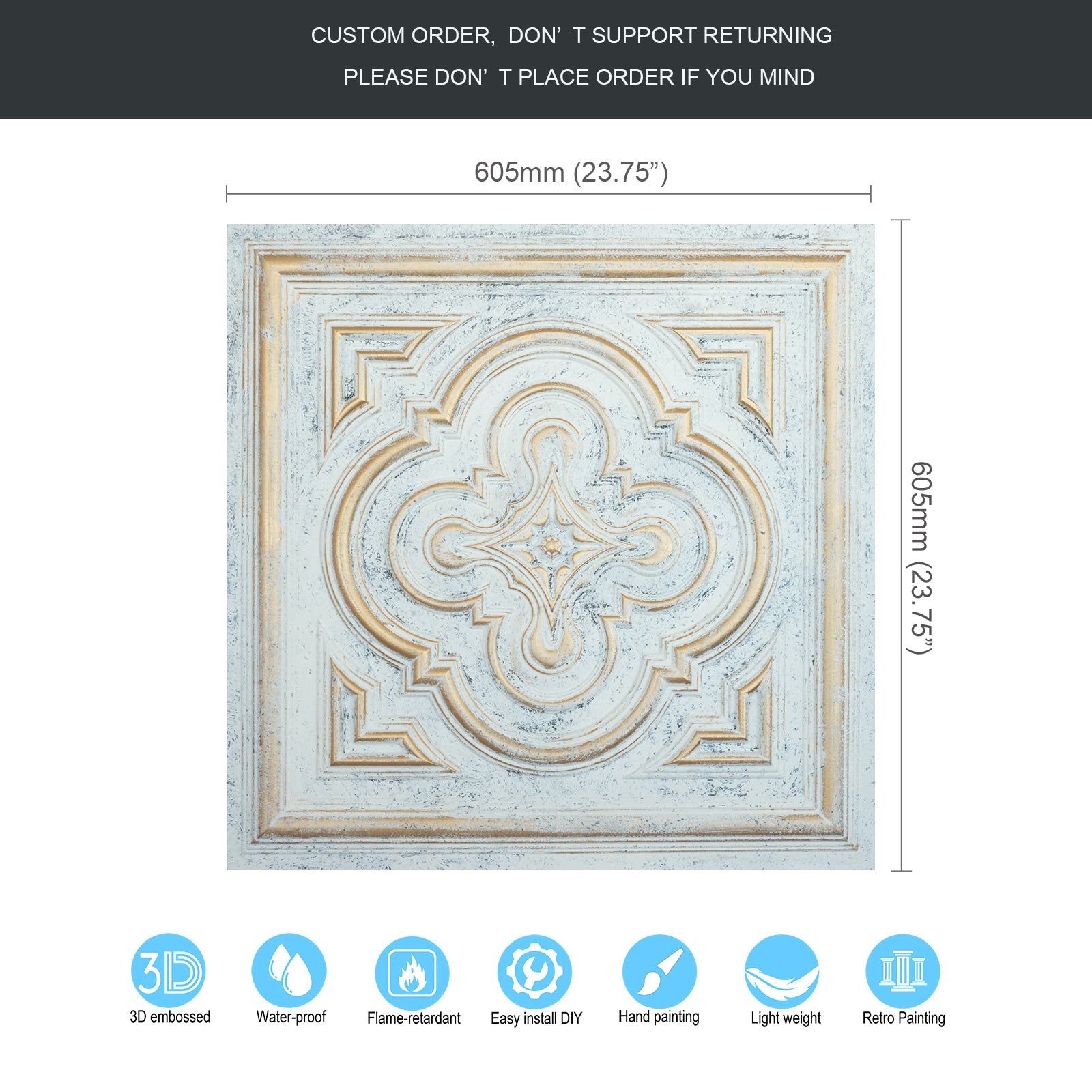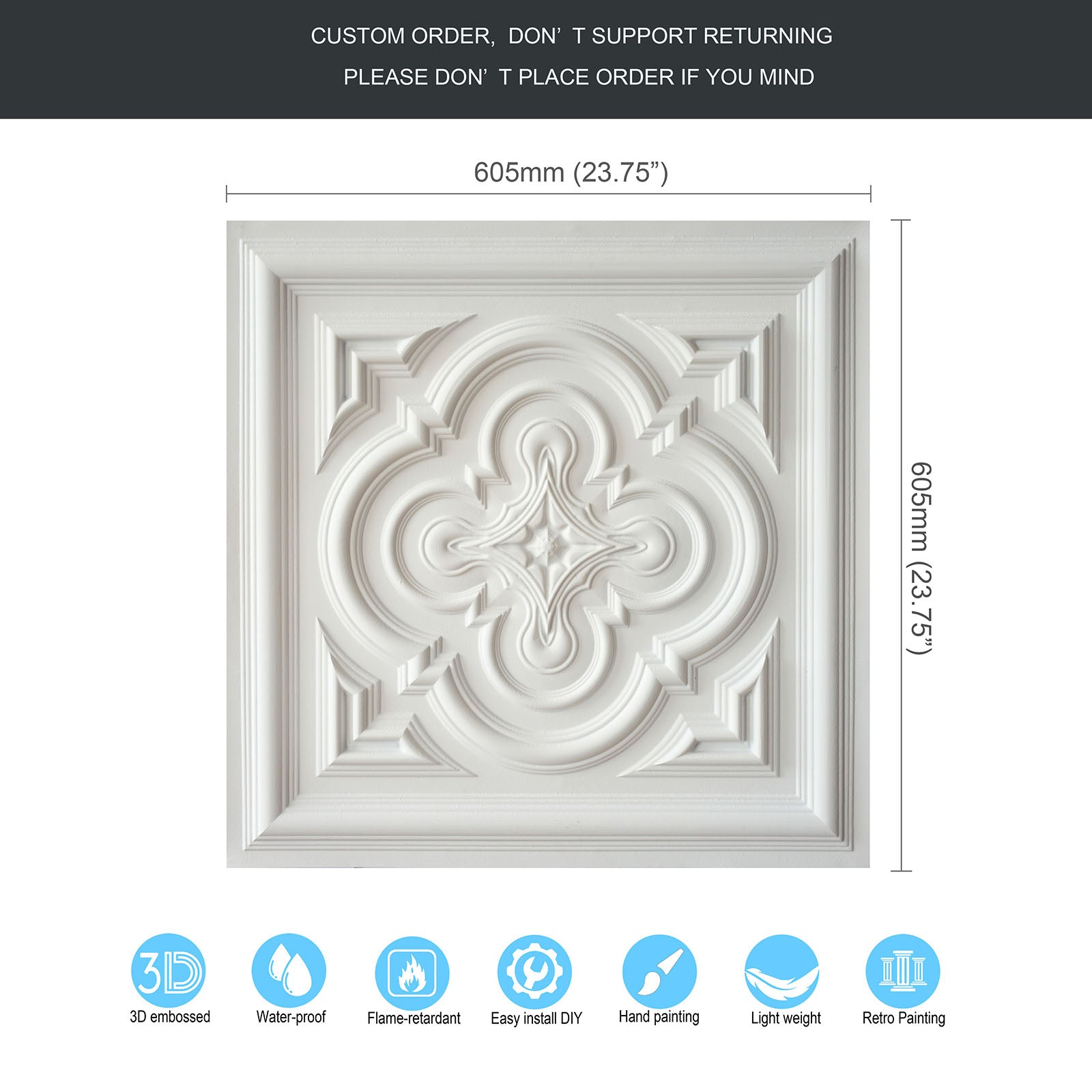 Dimension:23.75" x 23.75"(or 605mmx605mm)